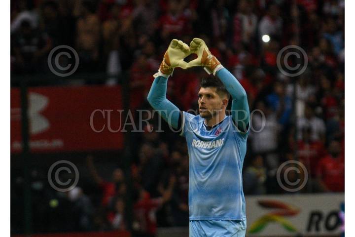 Tiago Volpi portero de los Diablos de Toluca autor del cuarto gol que dio la victoria a su escuadra ante Santos Laguna en el partido de ida de Cuartos de Final.