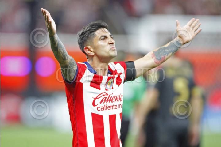 ZAPOPAN, JALISCO, 08MAYO2024.-Victor Guzmán, jugador de Chivas celebra su anotación, esto en partido correspondiente a los Cuartos de Final de Ida del Torneo Clausura 2024 de la Liga MX, en donde se enfrentan los equipos de Chivas vs Toluca, en juego que se lleva a cabo en el Estadio Akron, el marcador al final es 1-0, a favor del equipo de casa. FOTO: FERNANDO CARRANZA GARCIA / CUARTOSCURO.COM