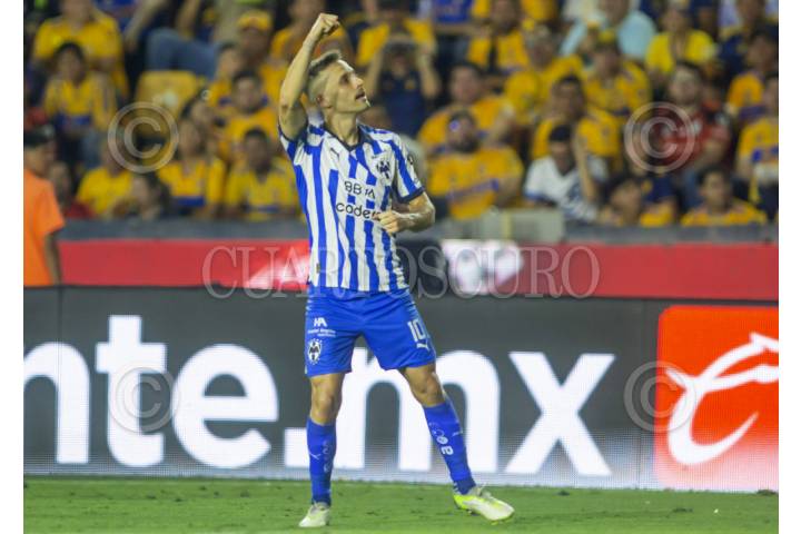 SAN NICOLÁS DE LOS GARZA, NUEVO LEÓN, 09MAYO2024.- Sergio Canales de los Rayados del Monterrey, festeja el gol ante Tigres, en el estadio Universitario, partido correspondiente a la ida de Cuartos de final de la Clausura 2024, de la LIga MX. Marcador Final: Tigres: 1 - Monterrey: 2. FOTO: GABRIELA PÉREZ MONTIEL / CUARTOSCURO.COM
