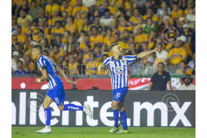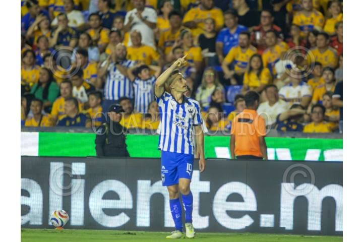SAN NICOLÁS DE LOS GARZA, NUEVO LEÓN, 09MAYO2024.- Sergio Canales de los Rayados del Monterrey, festeja el gol ante Tigres, en el estadio Universitario, partido correspondiente a la ida de Cuartos de final de la Clausura 2024, de la Liga MX. Marcador Final: Tigres: 1 - Monterrey: 2. FOTO: GABRIELA PÉREZ MONTIEL / CUARTOSCURO.COM