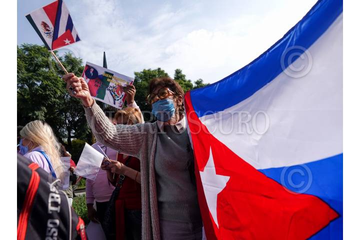 Simpatizantes en pro del gobierno cubano esperaron la salida y arribo del mandatario.