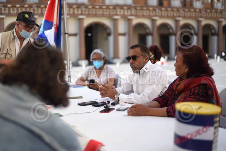 Dra. Hilda Lodrove, Antropóloga; Iliana Diéguez, profesora de la UAM Cuajimalpa; José Raúl Gallego, maestro y Anet Hernández, maestra durante una conferencia de prensa donde se pronunciaron en defensa de artistas cubanos que serán penalmente juzgados en Cuba, en el Centro Nacional de Comunicación Social A.C.