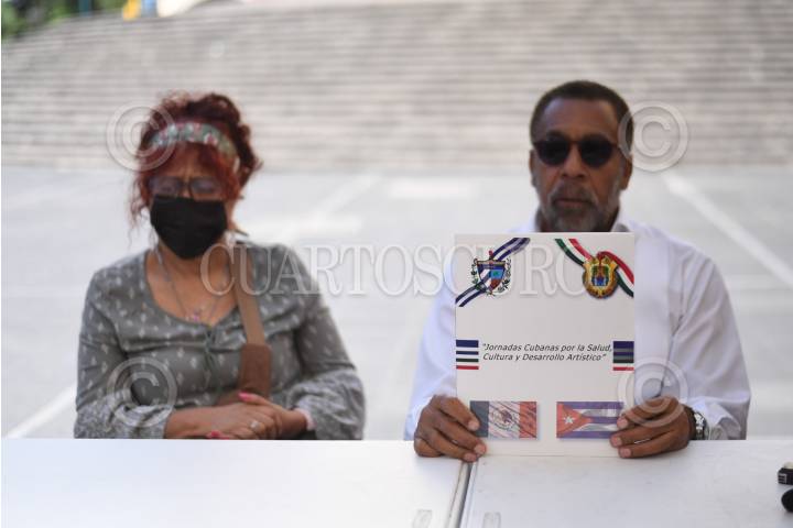José Raúl Gallego y Anet Hernández durante una conferencia de prensa donde se pronunciaron en defensa de artistas cubanos que serán penalmente juzgados en Cuba, en el Centro Nacional de Comunicación Social A.C.