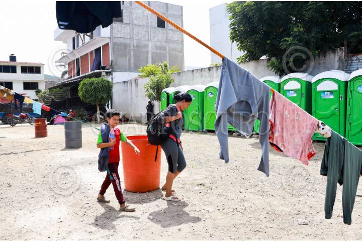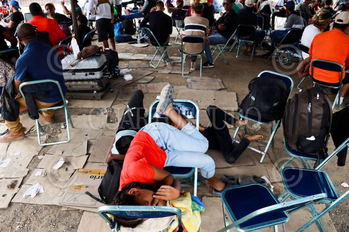 SAN SEBASTIÁN TUTLA, OAXACA, 04OCTUBRE2023.- Cientos de migrantes venezolanos, cubanos, haitianos, entre otras nacionalidades, llegan diariamente a los Centros de Movilidad Migratoria que el gobierno estatal en coordinación con la Secretaría de Gobernación (Segob), el Instituto Nacional de Migración (INM) y la Guardia Nacional instaló en San Pedro Tapanatepec y Juchitán de Zaragoza, en la región del Istmo de Tehuantepec, y en San Sebastián Tutla, en la región de Valles Centrales. En este último municipio conurbado a la capital de Oaxaca se han recibido desde el 25 de septiembre hasta el 1 de octubre, a un total de 10 mil 70 personas migrantes, a quienes se han brindado servicios básicos como agua, centros de carga para celulares, baños, y módulo de venta de boletos para que continúen su traslado a la Ciudad de México. Familias o personas que viajan en solitario esperan horas o días para abordar un autobús a la capital del país, algunos tardan más tiempo pues tienen que juntar dinero para cubrir el costo del pasaje. FOTO: CAROLINA JIMÉNEZ/CUARTOSCURO.COM