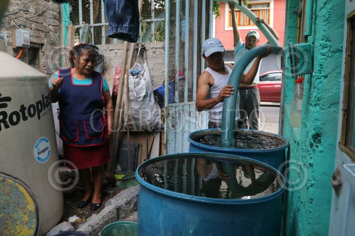 Trabajadores de pipas de agua abastecieron los domicilios en la colonia Desarrollo Urbano Quetzalcóatl