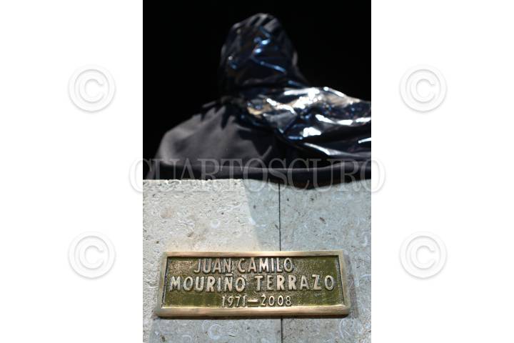 MÉXICO, D.F., 03NOVIEMBRE2010.- El Busto de Juan Camilo Mouriño yace cubierto por una lona de plástico en las instalaciones del Comité Ejecutivo Nacional del PAN previo a ser develado el día de mañana durante un homenaje por los dos años de su fallecimiento. FOTO: MISAEL VALTIERRA/CUARTOSCURO.COM