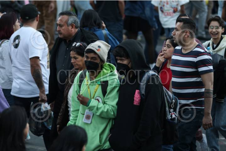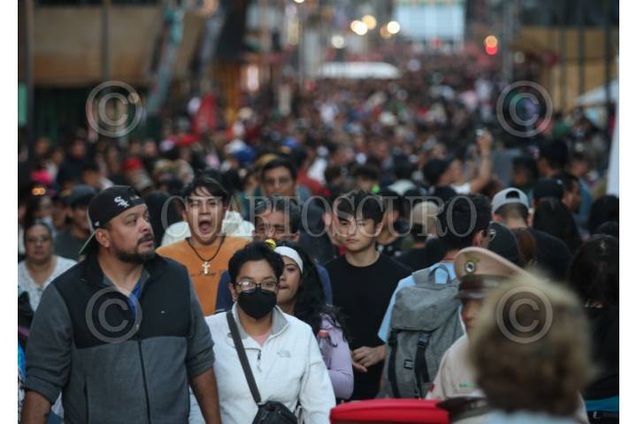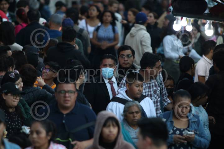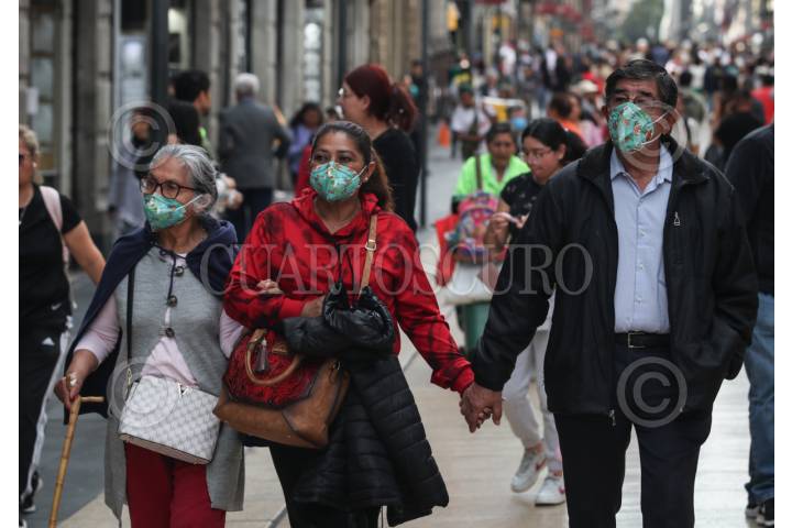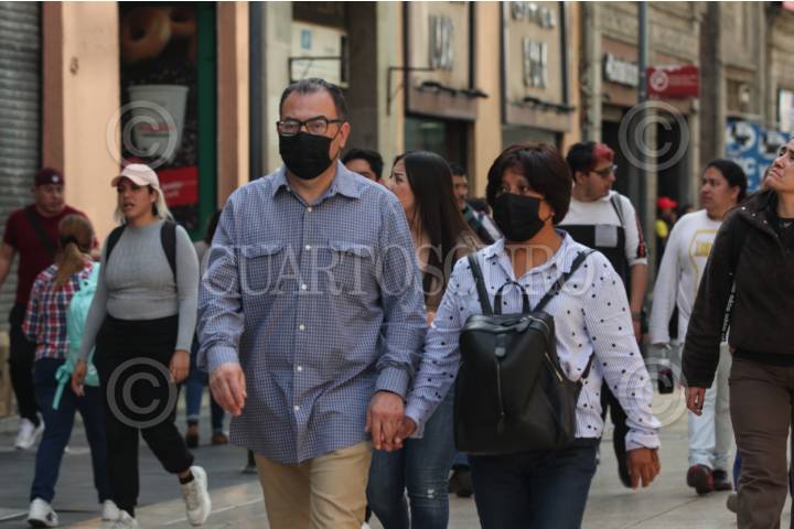 CIUDAD DE MÉXICO, 04FEBRERO2024.- La Secretaría de Salud capitalina, tras clarificar que no son medidas obligatorias establecieron que se sugiere el uso del cubrebocas en el transporte público y otros espacios cerrados, poco ventilados y en aglomeraciones. En la imagen capitolinos en el primer cuadrante del Centro Histórico donde se observa que la mayoría no usa cubrebocas. FOTO: ANDREA MURCIA /CUARTOSCURO.COM