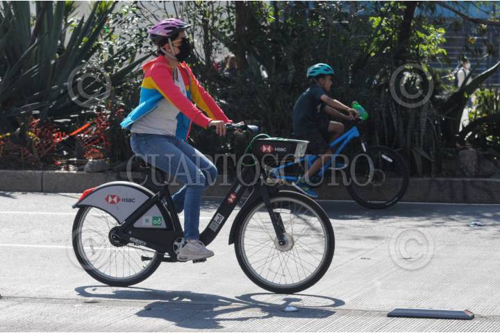 CIUDAD DE MÉXICO, 25FEBRERO2024 .-Una mujer utiliza un cubrebocas mientras utiliza su bicicleta durante el paseo dominical en Paseo de la Reforma. FOTO: DANIEL AUGUSTO /CUARTOSCURO.COM