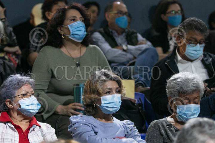 CIUDAD DE MÉXICO, 31JULIO2024.- Personas usan cubrebocas durante una conferencia, esto debido al alza de enfermedades respiratorias, entre ellas el Covid-19. Autoridades de salud han señalado que esta nueva ola durará al menos seis meses. FOTO: MOISÉS PABLO/CUARTOSCURO.COM