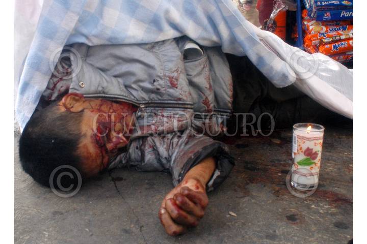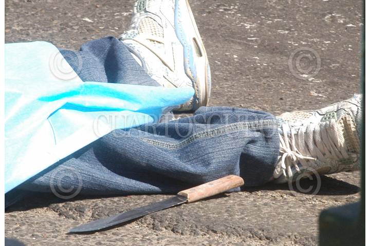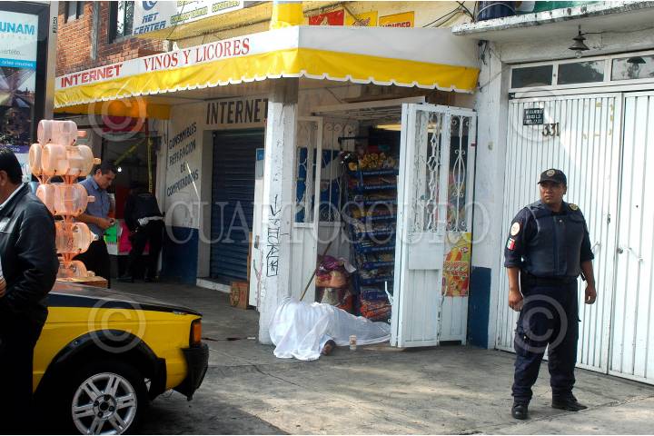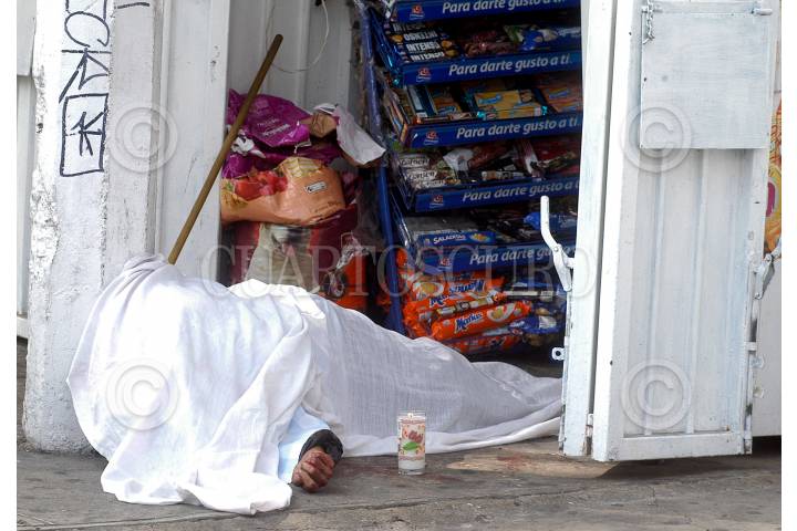 MÉXICO D.F., 18JUNIO2009.- Tras intentar asaltar una tienda, un sujeto con cuchillo en mano encontró la muerte con su propia arma ya que el encargado de la tienda le madrugo. Su cómplice logro darse a la fuga. Los hechos se registraron en calle de Santa Ursula casi esquina con San Benjamín colonia San Ursula perímetro de la Delegación Tlalpan. FOTO: LUIS CARBAYO/CUARTOSCURO.COM