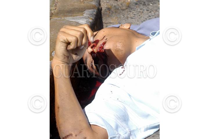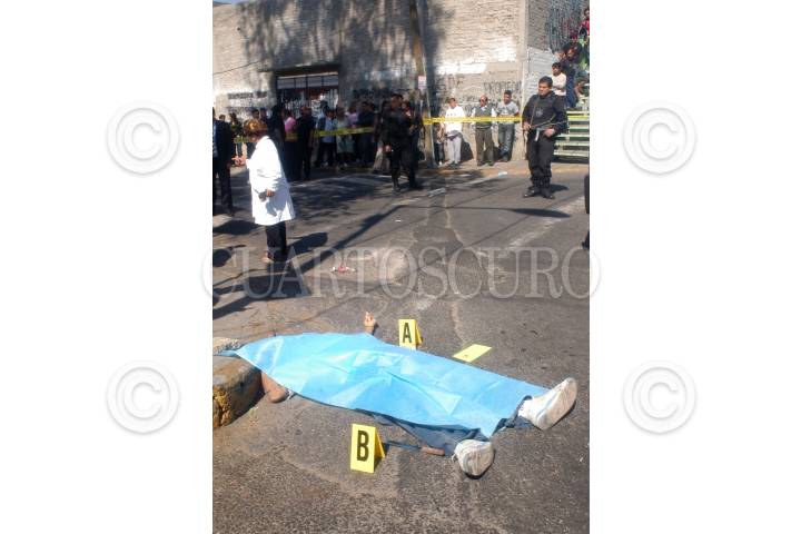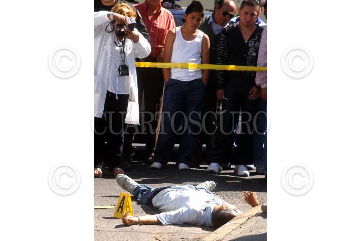MÉXICO, D.F., 28DICIEMBRE2009.- Un sujeto de aproximadamente 30 años, pierde la vida al recibir varios impactos de arma de fuego que le propino un elemento de la Policía Judicial, después de que dicho sujeto asaltara con cuchillo en mano, a pasajeros que viajaban abordo de un microbús cuando circulaba sobre la avenida Eduardo Molina, a la altura de la calle Fray Francisco de los Ángeles en la colonia Vasco de Quiroga, en la Delegación Gustavo A. Madero. El elemento policíaco fue puesto a disposición de las autoridades correspondientes en esta demarcación. FOTO: LUIS CARBAYO/CUARTOSCURO.COM