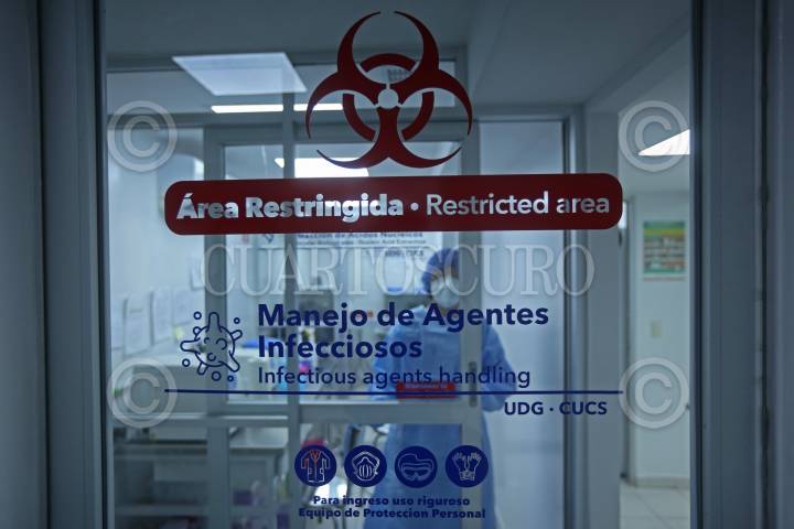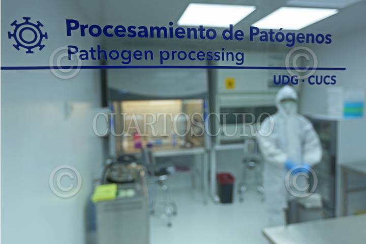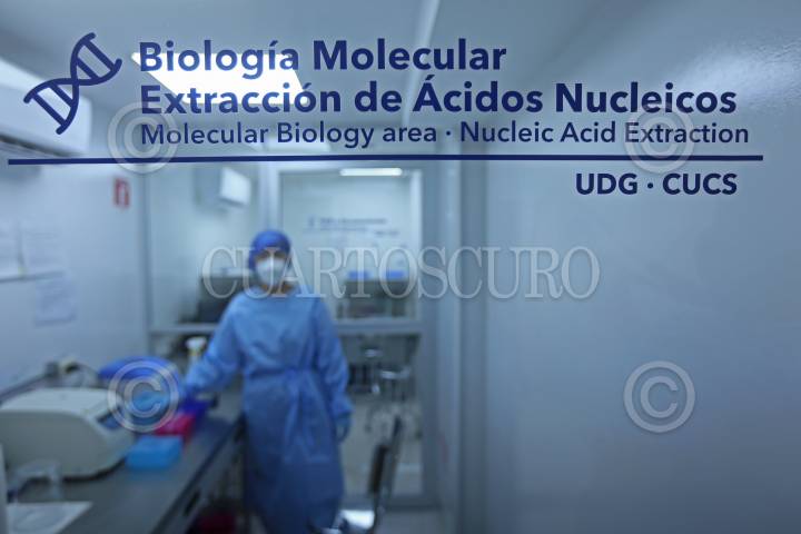 nvestigadores del LaDEER del Centro Universitario de Ciencias de la Salud de la U. De G., realizan una simulación del procedimiento de análisis de moléculas para poder diagnosticar si existen mutaciones o variantes en el virus del SARS-CoV—2, esto durante un recorrido realizado por el Laboratorio de Diagnostico en Enfermedades Emergentes y Reemergentes.