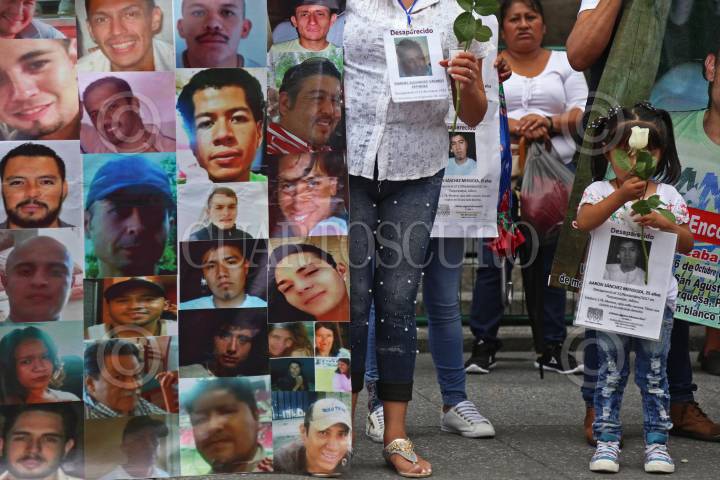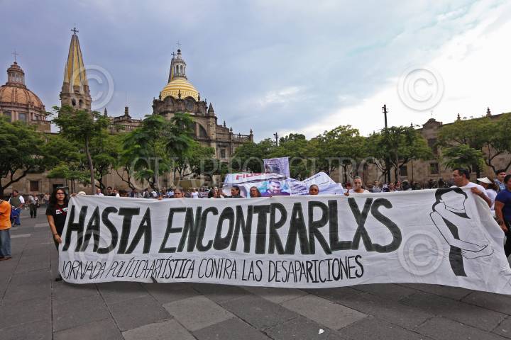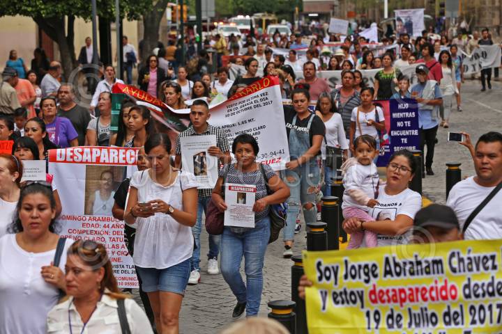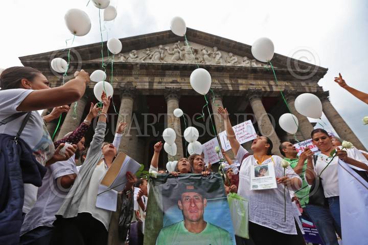 GUADALAJARA, JALISCO, 30AGOSTO2018.- Decenas de familiares de personas que se encuentran desaparecidas o que han sido víctimas de la violencia que sufre el país marcharon del Centro Universitario de Ciencias Sociales y Humanidades (CUCSH) de la Universidad de Guadalajara hasta la explanada del Teatro Degollado para honrar la memoria de sus seres queridos, esto en el marco de la Día Internacional de las Víctimas de Desaparición. FOTO: FERNANDO CARRANZA GARCIA / CUARTOSCURO.COM