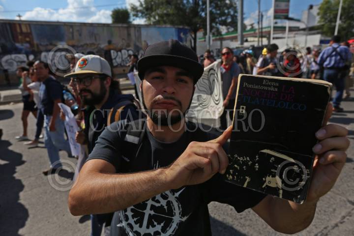 GUADALAJARA, JALISCO, 02OCTUBRE2018.- Alrededor de 300 alumnos de la normal de Atequiza, del Centro Universitario de Ciencias Sociales y Humanidades de la U. De G. entre otros marcharon del CUCSH a la Rectoría de la Universidad de Guadalajara para protestar por los 50 años de la matanza de Tlatelolco. FOTO: FERNANDO CARRANZA GARCIA/CUARTOSCURO.COM