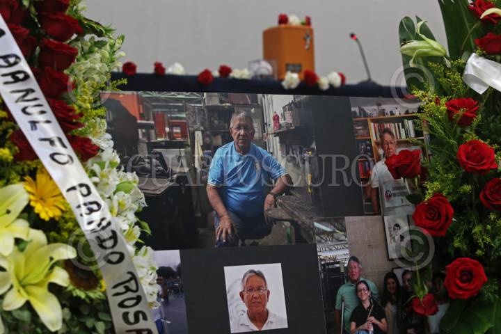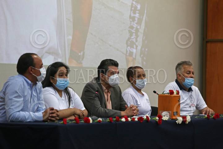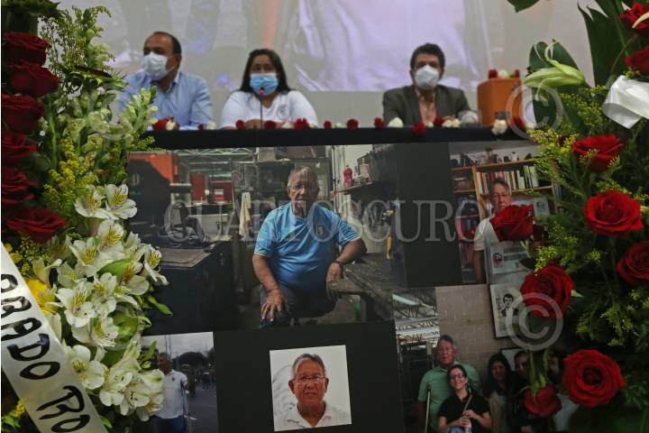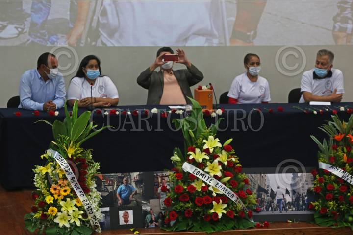 En la imagen Romeo Cartagena (hijo), Alejandra Cartagena (hija), José Enrique Velázquez Martín, Martha Rivero (Viuda) entre otros, encabezaron el homenaje póstumo a Álvaro Mario Cartagena López.