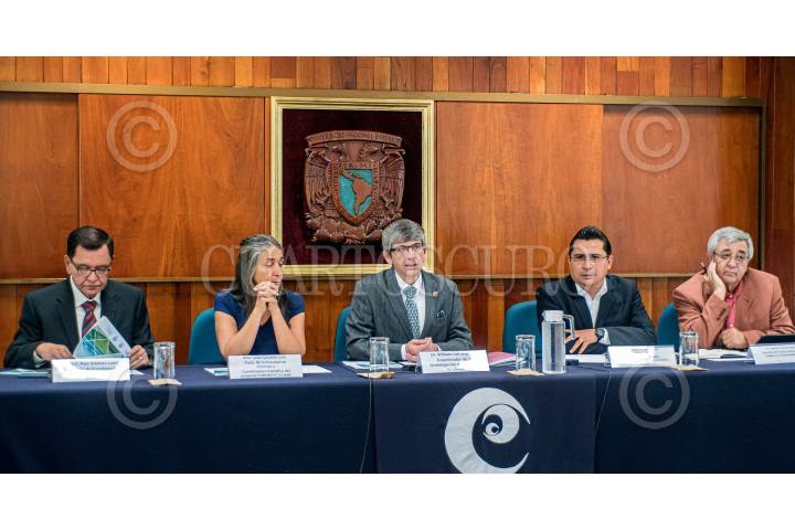 CIUDAD DE MÉXICO, 22MAYO2019.- Raúl Guzmán León, Julia Carabias, William Lee, Mario Rafael Llergo y Rafael Loyola Díaz, anunciaron que la Universidad Nacional Autónoma de México coordina el proyecto Cambio global y sustentabilidad en la cuenca del Usumacinta y zona marina de influencia, en una región estratégica y de la más alta biodiversidad en México, fundamental por sus servicios ambientales y enorme riqueza natural. FOTO: UNAM /CUARTOSCURO.COM