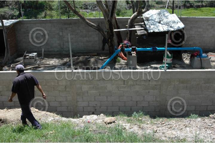 CUAUTITLAN IZCALLI, ESTADO DE MÉXICO, 23JULIO2009.- Colonos del Bosques del lago se oponen a la conexión de una toma de agua del pozo local hacia el fraccionamiento nuevo La Floresta, donde se construyen 700 viviendas, por que no cuentan con los permisos pertinentes y porque en la zona no cuentan con el agua suficiente y tendrían un déficit de 25 litros por segundo que se les proyecta otorgar a la nueva unidad. Los vecinos pagaron un trascavo para cubrir los 700 metros que la empresa FRISA S.A. de C.V.perforó para realizar la conexión. FOTO: MARIO NULO/CUARTOSCURO.COM
