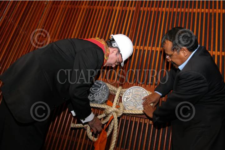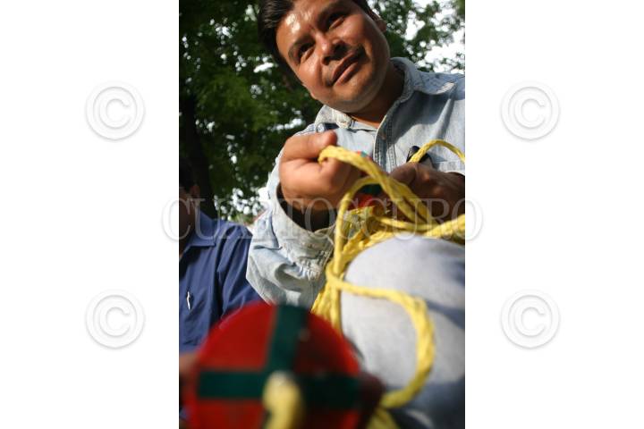 MÉXICO, D.F. 19MAYO2007.-Viudas y Familiares de mineros muertos en la mina Pasta de Conchos realizaron una misa a las afueras de la empresa Industra Minera México recordando a las victimas de la tragedia ocurrida en Coahuila. Uno de los asistentes muestra la llamada "cuerda de vida" que pudo haber salvado a los mineros que perdieron la vida. FOTO:SAÚL LÓPEZ/CUARTOSCURO.COM