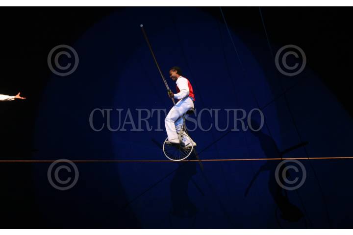 MÉXICO, D.F., 03ENERO2009.- Durante el acto; "La Cuerda Floja", un artista circense pasa sobre ella en el Circo mexicano Hermanos Vazquez, que celebró ayer por la noche la entrega de la medalla de Reconocimiento al Mérito Artístico Circense: Mario Moreno "Cantinflas", el cual artistas de varias disciplinas, fueron objeto de medallas de oro, plata y bronce, por su trabajo profesional dentro de la carpa. De igual manera mostraron el espectaculo visual que tiene este gran circo, con payasos, actos circences, así como la orquesta "Hermanos Vazquez". FOTO: MISAEL VALTIERRA/CUARTOSCURO.COM