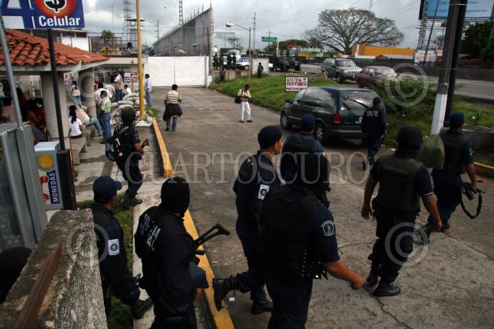 VILLAHERMOSA, TABASCO, 23FEBRERO2009.- Una cuerda de traslada se realizó en el Centro de Readaptación Social del Estado de Tabasco (CRESET), en el cual participan elementos Ministeriales, Policía Estatal y elementos del 17 Batallón de Infantería. Se presume que 17 presos de alta peligrosidad que participaron en la muerte de un mando policiaco en el municipio de Paraiso serán trasladados al penal de Tepic, Nayarit. FOTO: MARCO POLO GUZMÁN HERNÁNDEZ/CUARTOSCURO.COM