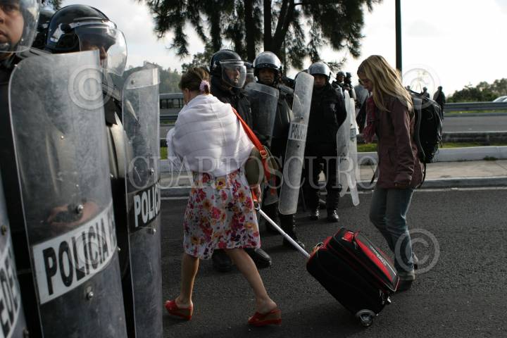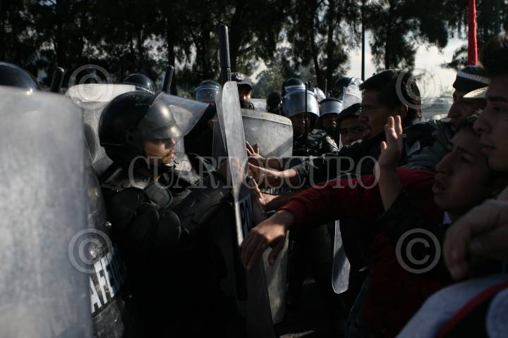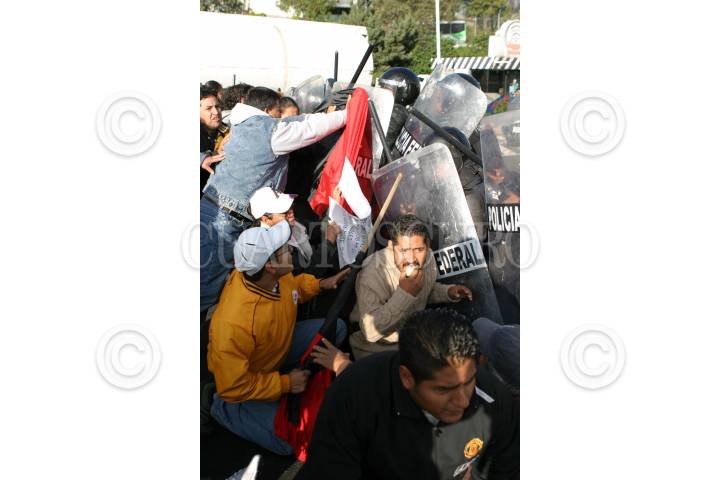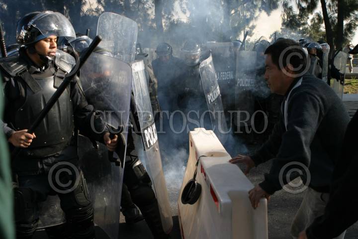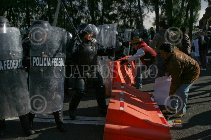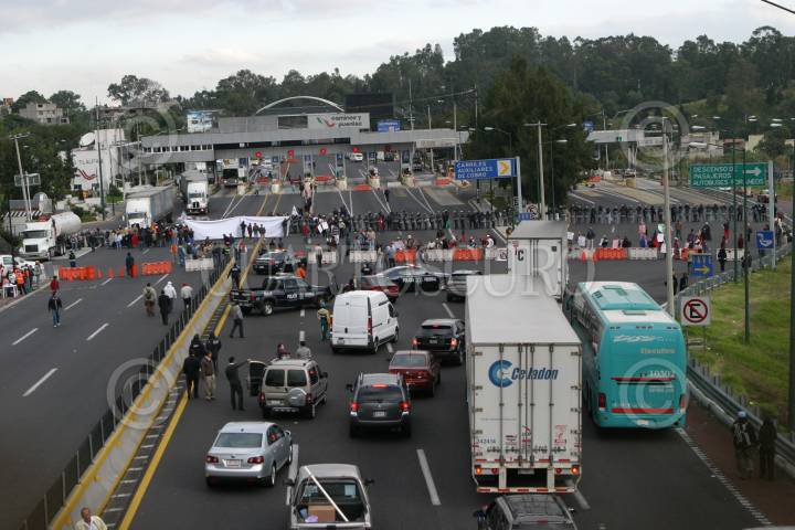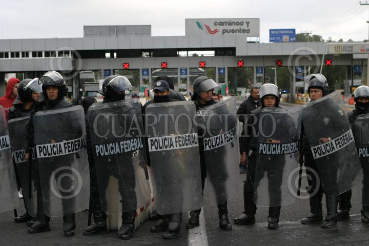 MÉXICO, D.F., 11NOVIEMBRE2009.- La Policía Federal replegó a simpatizantes del Sindicato Mexicano de Electricistas (SME) que se manifestaron en la caseta México Cuernavaca. FOTO: IVÁN STEPHENS/CUARTOSCURO.COM