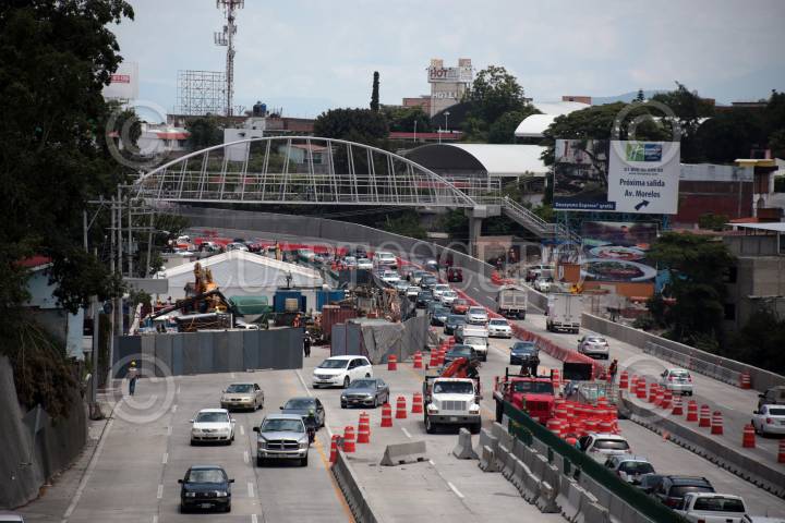 CUERNAVACA, MORELOS, 24JULIO2017.- Continúan los trabajos de remediación en el socavón que se abrió en el kilómetro 93 del paso exprés. Han puesto una barrera de mamparas metálicas que cubre la visión de los trabajos. FOTO: MARGARITO PÉREZ RETANA /CUARTOSCURO.COM