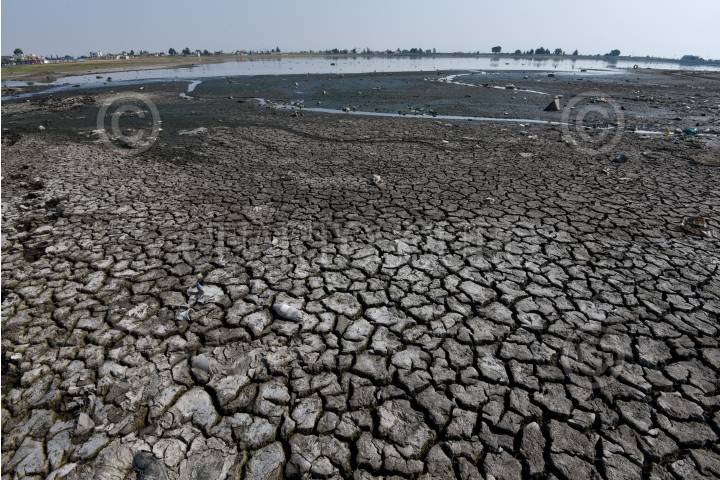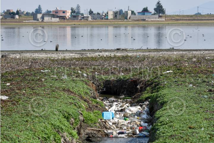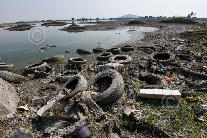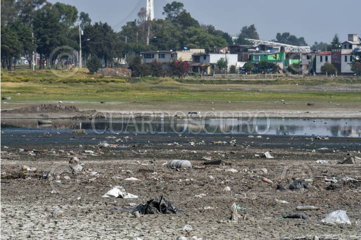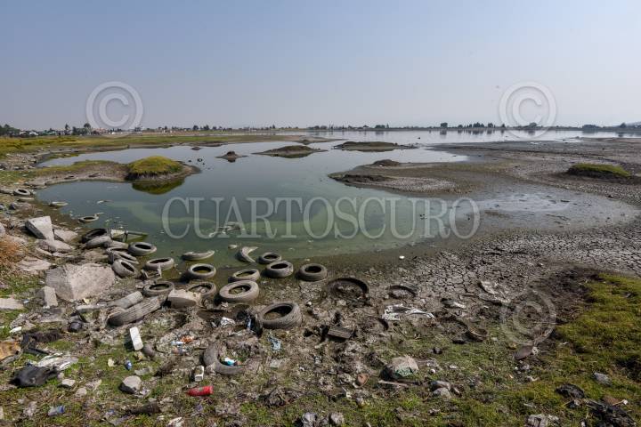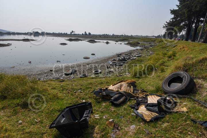 Cuerpos de agua como la Laguna de Palmillas en Toluca sufre los estragos de la sequía que se registra en diversos puntos de la República Mexicana y deja al descubierto la contaminación del lugar.