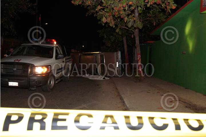 IXTEPEC, OAXACA, 01ENERO2009.- Un joven de aproximadamente 31 años de edad, perdió la vida al estrellarse contra un poste de luz mientras viajaba abordo de un automóvil Fairmont con placas TJP-6841 del estado de Oaxaca. El incidente se dio en la calle San Pedro de la colonia Moderna, donde elementos de la policía municipal y tránsito realizaron las acciones del levantamiento de cuerpo. FOTO: JAVIER PALACIOS/CUARTOSCURO.COM