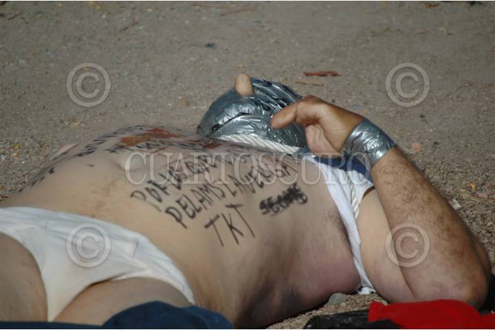 CANCUN, QUINTANA ROO, 23MARZO2009.- Alberto Vilchis Castillo mejor conocido como 'El Toro' de aproximadamente 44 años fue encontrado muerto con múltiples heridas punzocortantes. El occiso tenía los pies amarrados con un cable eléctrico y presentaba golpes en el cuerpo. FOTO: AMARANTA PRIETO/CUARTOSCURO.COM