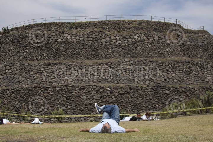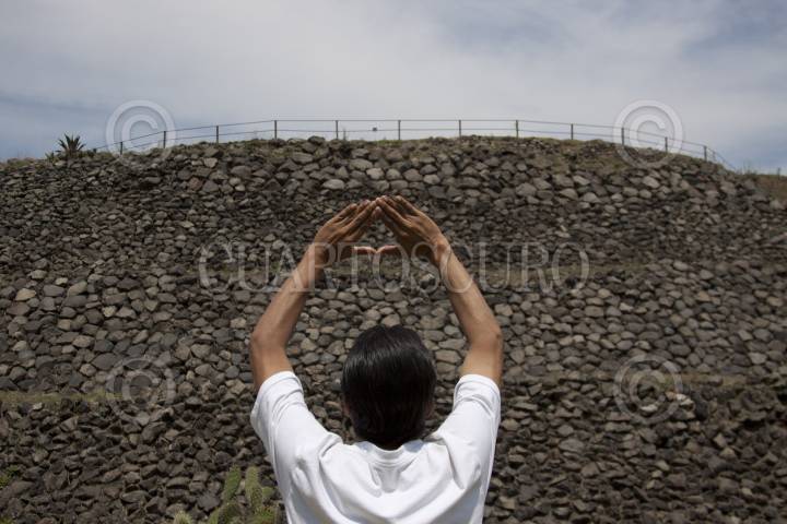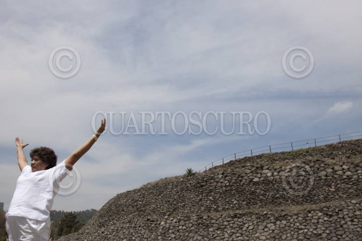 CIUDAD DE MÉXICO, 20MARZO2017.- Personas acuden a la Pirámide de Cuicuilco para aprovechar la entrada de la primavera y "cargarse de energía", en una tradición que año con año gana adeptos. FOTO: ISAAC ESQUIVEL /CUARTOSCURO.COM
