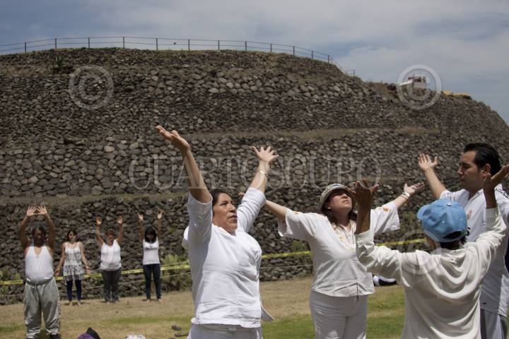 MÉXICO, D.F., 19MARZO2012.- Capitalinos realizaron rituales al pie de la pirámide de Cuicuilco para cargarse de energía con el equinoccio de la primavera. FOTO: IVÁN STEPHENS /CUARTOSCURO.COM