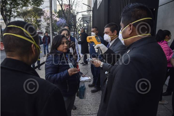 En las instalaciones del Senado de la República fueron instalados controles sanitarios y de acceso como parte de las medias de prevención de coronavirus (cocos-19).