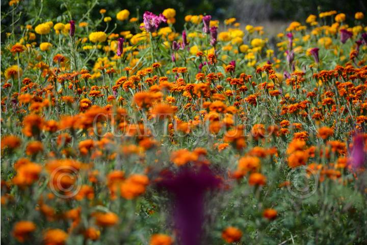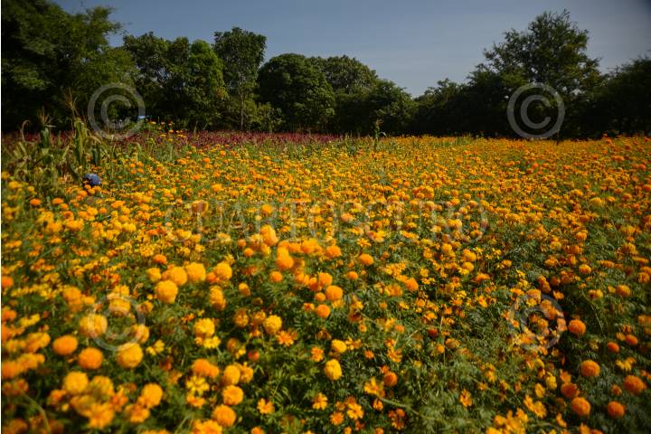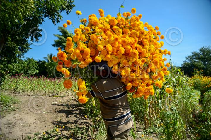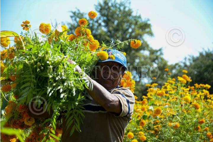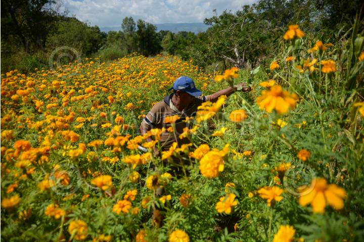 Corte de flor de Cempasúchil en el municipio de Suchiapa para la celebración próxima del Día de Muertos.