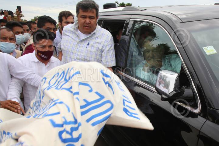Gira de trabajo de Andrés Manuel Löpez Obrador por el estado de Guerrero. Pobladores, trabajadores de la salud y campesinos se manifestaron frente a la caravana del mandatario