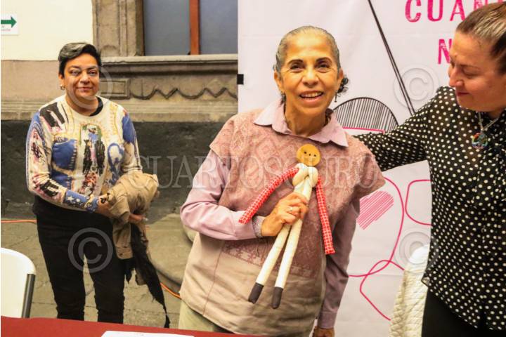CIUDAD DE MÉXICO. 12SEPTIEMBRE2025.- Presentación de la exposición “Hechas a Mano. Muñecas de la Cooperativa 19 de Septiembre”, en el Museo de la Ciudad de México. Tessa Brisac, Beatriz Ramírez, Mariana Gómez, Ana Francis Mor, encabezaron el evento. FOTO: VICTORIA VALTIERRA/CUARTOSCURO.COM