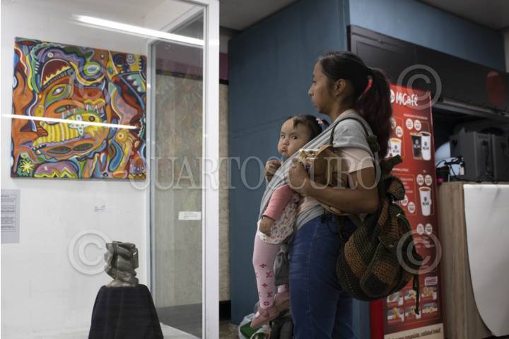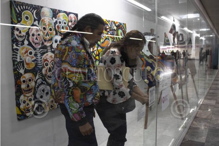CIUDAD DE MÉXICO. 12SEPTIEMBRE2025.- Mauricio Siller Obregón inauguró exposición en la estación Zaragoza de la Línea 1 del metro. Algunos usuarios del Metro se detienen a observar la exposición durante su trayecto. FOTO: CAMILA AYALA BENABIB / CUARTOSCURO.COM