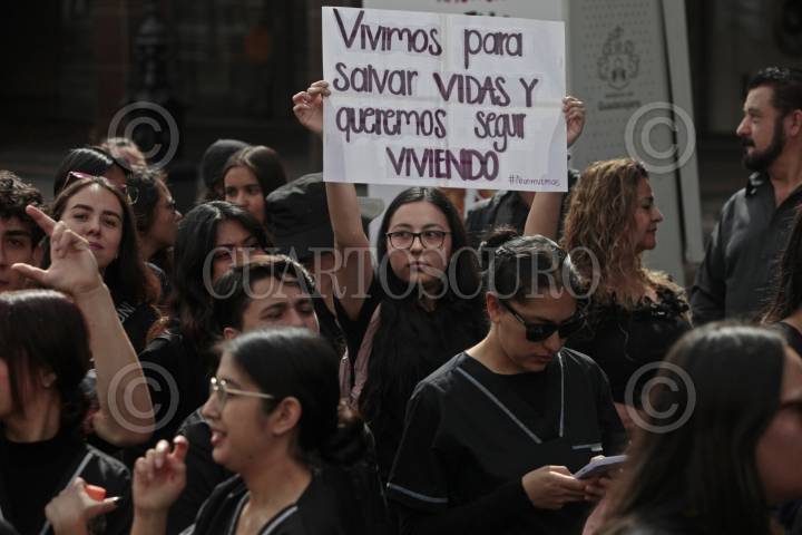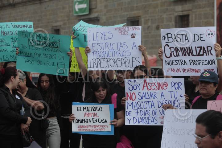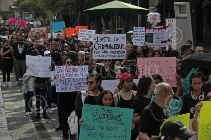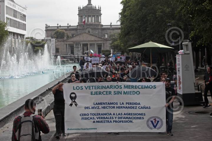 GUADALAJARA, JALISCO.- 18FEBRERO2025.- Médicos Veterinarios Zootecnistas de Jalisco, protestaron esta mañana en la explanada del Instituto Cultural cabañas y caminaron hacia Palacio de Gobierno para hacer llegar un escrito al poder Ejecutivo para que les den garantías al realizar sus labores, esto a causa de lo sucedido en la ciudad de México, donde Héctor Hernández Cañas fue asesinado por los dueños de una perrita a la que atendió y no pudo rescatar. FOTO : FERNANDO CARRANZA GARCIA / CUARTOSCURO.COM
