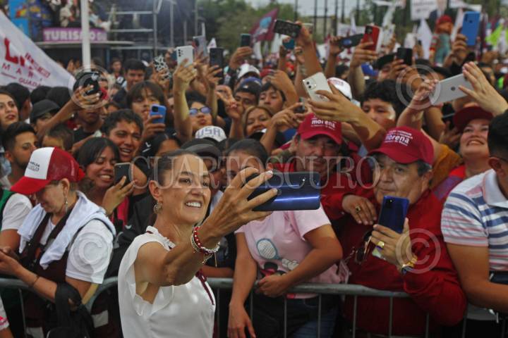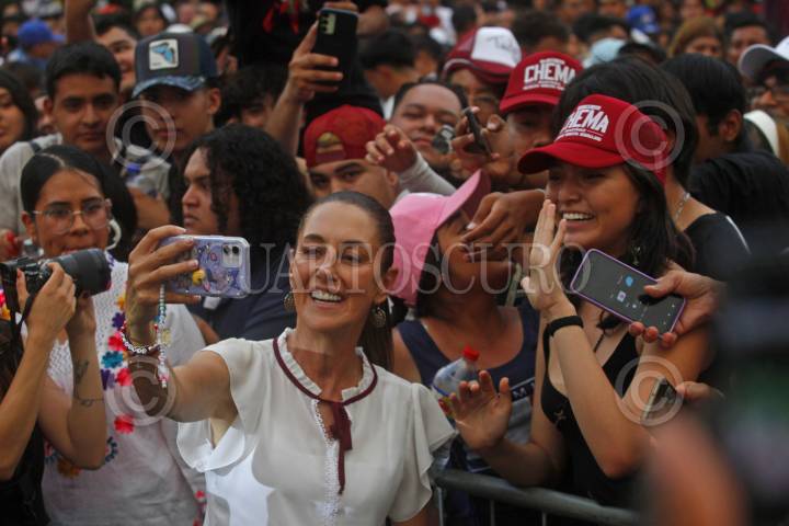 GUADALAJARA, JALISCO. 28MAYO2024.- Claudia Sheinbaum, candidata a la presidencia de la republica por la coalición “Sigamos Haciendo Historia” (Morena, PT y PVEM), encabezo un mitin en la explanada del Instituto Cultural Cabañas, a donde se dieron cita miles de simpatizantes de la candidata. FOTO: FERNANDO CARRANZA GARCIA / CUARTOSCURO.COM