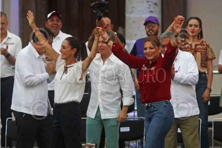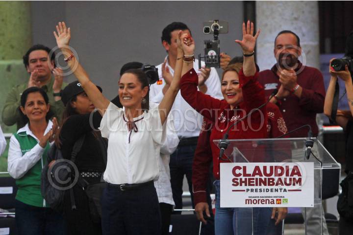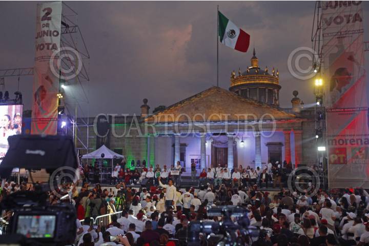 GUADALAJARA, JALISCO. 28MAYO2024.- Claudia Delgadillo candidata de Morena a la gubernatura del estado, cerro campaña el día de hoy, en mitin encabezado por Claudia Sheinbaum, candidata a la presidencia de la republica por la coalición “Sigamos Haciendo Historia” (Morena, PT y PVEM), esto en la explanada del Instituto Cultural Cabañas, a donde se dieron cita miles de simpatizantes. FOTO: FERNANDO CARRANZA GARCIA / CUARTOSCURO.COM