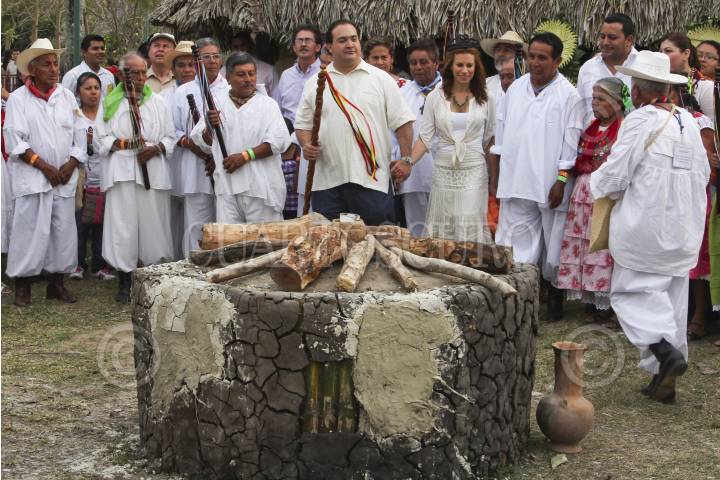 PAPANTLA, VERACRUZ, 17MARZO2012.- Cesar Duarte, gobernador del estado en compañia de su esposa durante la inauguracion de la Cumbre Tajin 2012. FOTO: ENRIQUE ORDÓÑEZ /CUARTOSCURO.COM