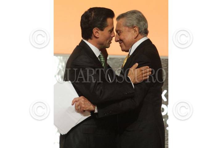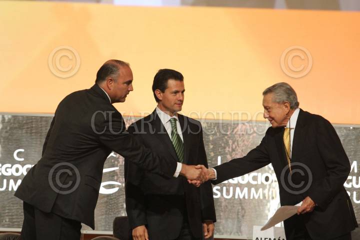 QUERETARO, QUERETARO, 11OCTUBRE 2012.- Enrique Peña Nieto, presidente electo de México acompañado de Miguel Alemán Velazco, durante la decima edición de México, Cumbre de Negocios “Impulsos para un México Desarrollado”, realizado en salón plenario del centro de negocios de Queretaro. Alemán Velazco, durante su ponencia le entregó un recado a Enrique Peña Nieto del ex presidente de los estados Unidos Bill Clinton. FOTO: SAÚL LÓPEZ /CUARTOSCURO.COM