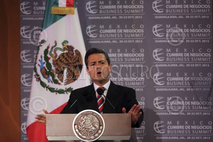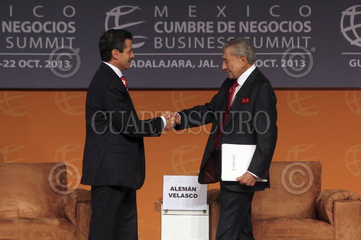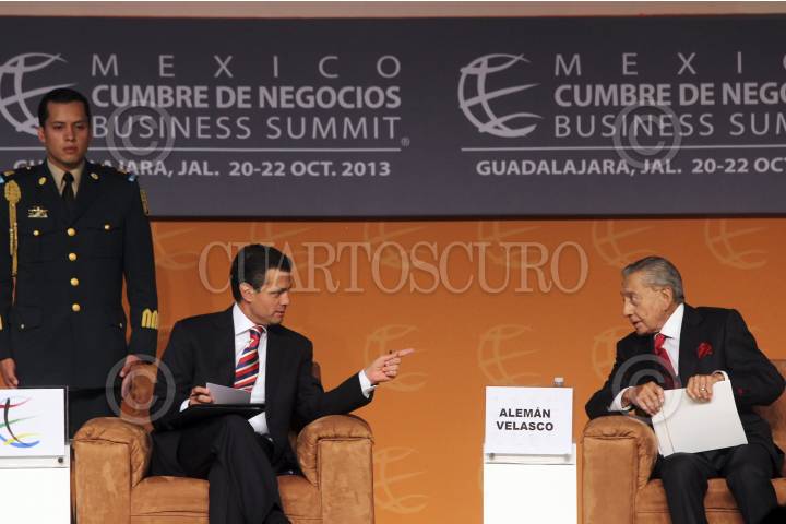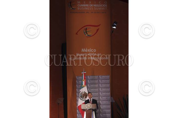 GUADALAJARA, JALISCO, 22OCTUBRE2013.-Enrique Peña Nieto, Presidente de México, ofreció una Conferencia Magistral, en donde estuvieron presentes, Miguel Alemán Velasco, ex gobernador del estado de Veracruz y Presidente de la Cumbre, así como el Gobernador del Estado, Jorge Aristóteles Sandoval Díaz, esto en el marco de la edición XI de la Cumbre de Negocios “México: Nueva Visión en el Contexto Internacional” que se celebra del 20 al 22 de octubre en Expo Guadalajara. FOTO: FERNANDO CARRANZA /CUARTOSCURO.COM