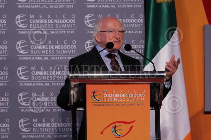 GUADALAJARA, JALISCO, 22OCTUBRE2013.-Michael D. Higgins, presidente de Irlanda, ofreció una Conferencia Magistral, en el marco de la edición XI de la Cumbre de Negocios “México: Nueva Visión en el Contexto Internacional” que se celebra del 20 al 22 de octubre en Expo Guadalajara. FOTO: FERNANDO CARRANZA GARCIA /CUARTOSCURO.COM