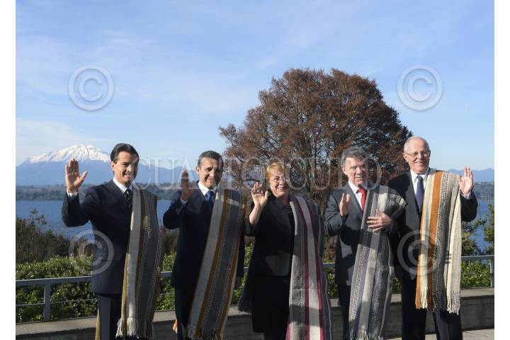 PUERTO VARAS, CHILE, 01JULIO2016.- En el marco de la XI Cumbre de la Alianza del Pacífico, el Presidente Enrique Peña Nieto y sus homólogos de Chile, Colombia y Perú, Michelle Bachelet, Juan Manuel Santos, y Ollanta Humala, respectivamente, así como el Presidente electo de Perú, Pedro Pablo Kuczynski, posaron para la Fotografía Oficial. FOTO: PRESIDENCIA / CUARTOSCURO.COM