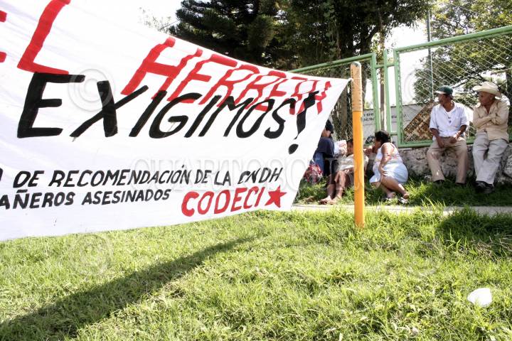 XALAPA, VERACRUZ 23MAYO2006.- Campesinos del sur del estado procedentes de Isla Mecayapan, Pajapan, Córdoba y demás, se manifestaron en la sede de la SAGARPA para exigirle al gobierno de Fidel Herrera, cumpla con las promesas de vivienda y apoyo al campo que prometió, así mismo los campesinos pertenecientes al Comité de Defensa Ciudadana CODECI se manifestaron en apoyo a la liberación de los detenidos en el caso Atenco, pues señalaron que la lucha del pueblo de Atenco es una lucha similar al suya por la defensa de la tierra y en contra de la represión. FOTO: Carlos Tischler/CUARTOSCURO.COM