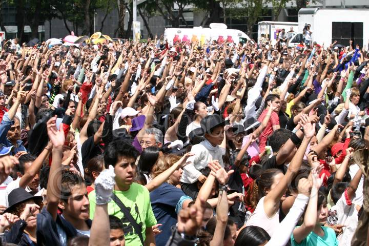 MÉXICO, D.F., 30AGOSTO2009.- Cientos de fans de Michael Jackson se reunieron en la glorieta del Ángel de la Independencia en donde bailaron el éxito "Beat It" en homenaje a "El Rey del Pop", quien este 29 de agosto hubiera cumplido 51 años. FOTO: RODOLFO ANGULO/CUARTOSCURO.COM
