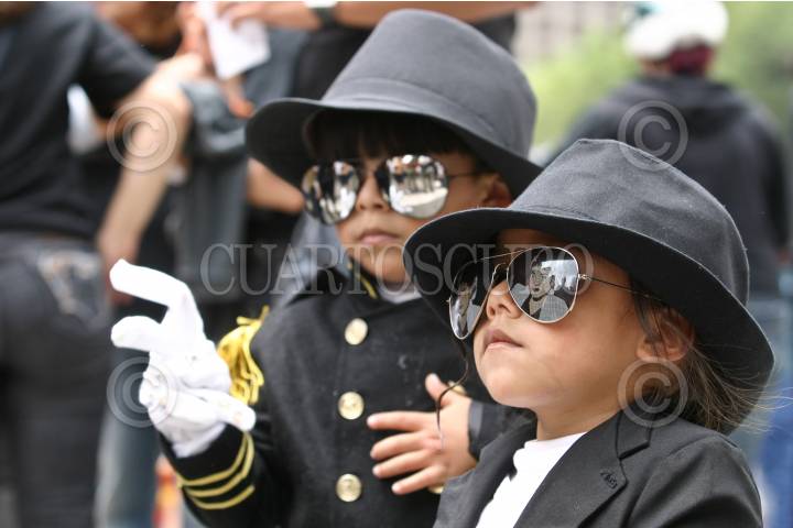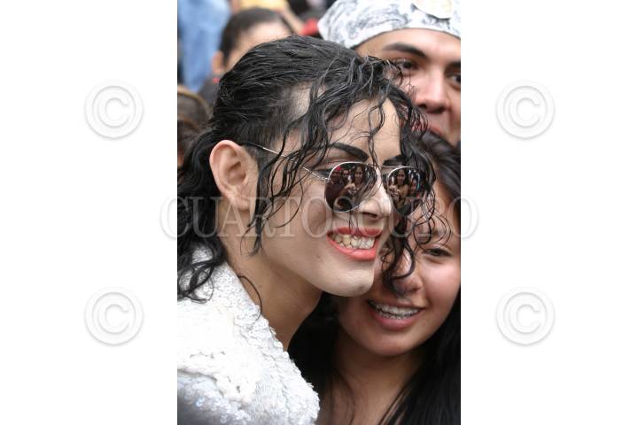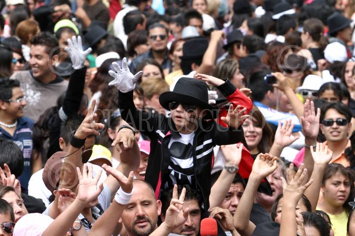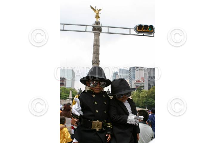 MÉXICO, D.F., 30AGOSTO2009.- Un imitador de Michael Jackson se reúne al lado de cientos de fanáticos en la glorieta del Ángel de la Independencia en donde bailaron el éxito "Beat It" en homenaje a "El Rey del Pop", quien este 29 de agosto hubiera cumplido 51 años. FOTO: RODOLFO ANGULO/CUARTOSCURO.COM