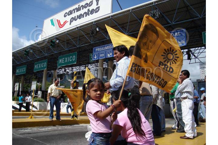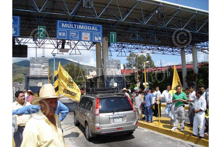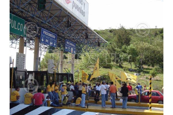 CHILPANCINGO, GUERRERO. 13OCTUBRE2007.- Integrantes de la dirigencia estatal del PRD, acompañados de diputados federales y locales asi como de simpatizantes, tomaron por espacio de dos horas las casetas de cobro de la Autopista del Sol en el tramo Cuernavaca-Acapulco dejando pasar a cientos de automovilistas de manera gratuita, esto a manera de protesta por los altos costos en la tarifa de dicha via de comunicación terrestre. Enla imagen en la caseta de cobro de Palo Blanco. FOTO: OSCAR ALVARADO/CUARTOSCURO.COM