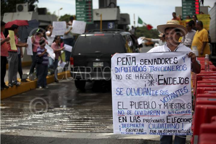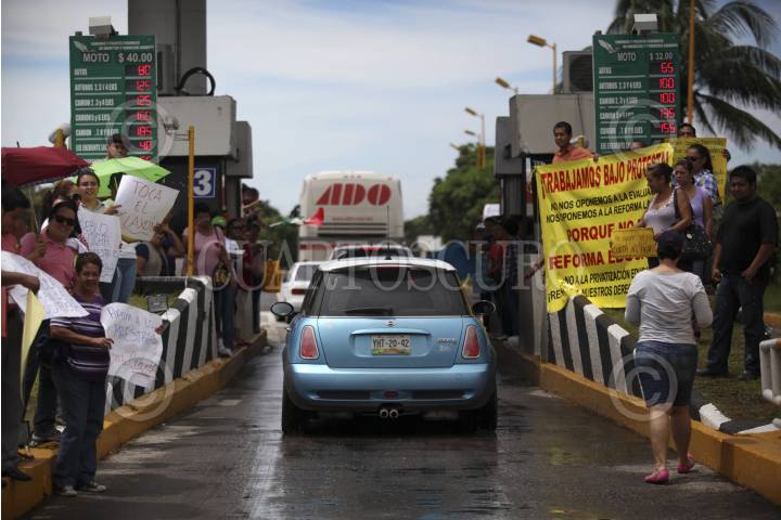 VERACRUZ, VERACRUZ., 06SEPTIEMBRE2013.- Como parte de las acciones nacionales, el magisterio veracruzano realizó una protesta en las casetas de peaje de la autopista Veracruz - Córdoba en donde permitieron el acceso de los vehículos sin efectuar la cuota correspondiente. FOTO: FÉLIX MÁRQUEZ / CUARTOSCURO.COM