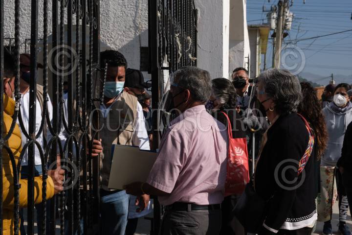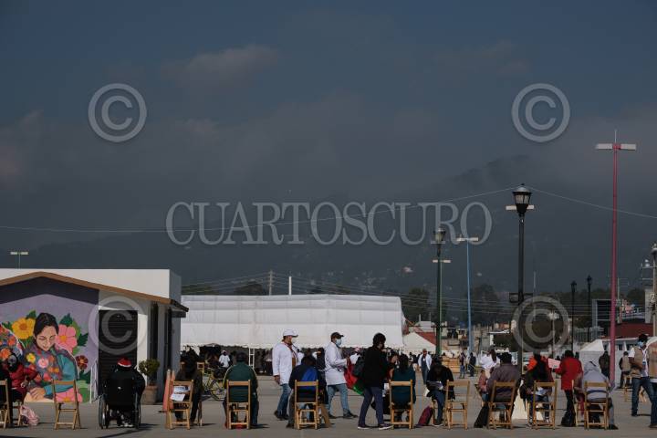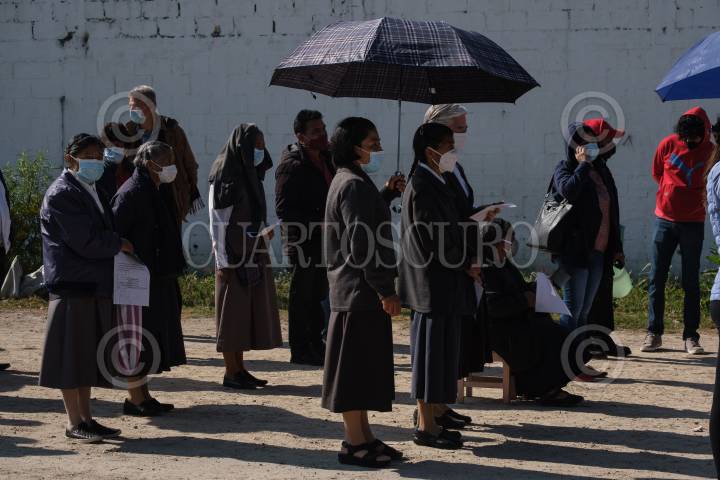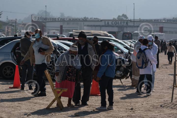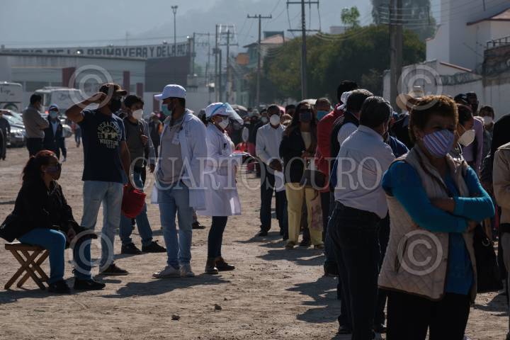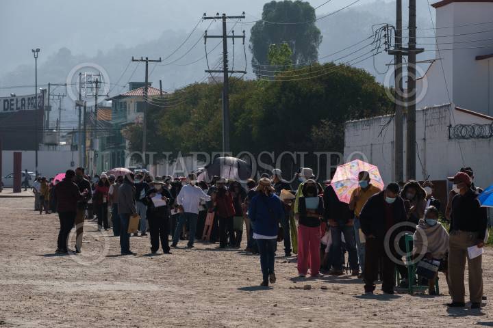 Cientos de personas forman filas para recibir la vacuna contra la enfermedad de Covid 19 en los ochos diferentes puntos instalados en el municipio.